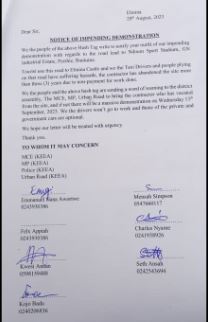 In the notice titled “NOTICE OF IMPENDING DEMONSTRATION,” the coalition expressed their frustration and outlined their demands. They are calling on the District Assembly, the Municipal Chief Executive (MCE), and the Member of Parliament (MP) to urgently address the situation.